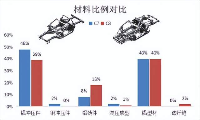 白車身減重是汽車實(shí)現(xiàn)輕量化的關(guān)鍵所在,鋁型材框架在車身結(jié)構(gòu)中的應(yīng)用已經(jīng)相當(dāng)普遍。以其較高的比強(qiáng)度、良好的耐腐蝕性、成形性以及可連接性等一系列優(yōu)良特性成為白車身減重的首選材料之一。例如,奧迪A8、寶馬7系、奔馳S級(jí)等高端車型都采用了鋁制車身框架。這種框架不僅可以顯著減輕車身重量,提高燃油效率,還可以增強(qiáng)車身的剛性和穩(wěn)定性。數(shù)據(jù)顯示,采用鋁型材框架的車身可以比傳統(tǒng)鋼制車身減輕約30%的重量,從而降低燃油消耗約20%。鋁合金目前在汽車白車身上常用的變形鋁合金包括5xxx系、6xxx系,7xxx系鋁合金由于成本原因應(yīng)用較少。